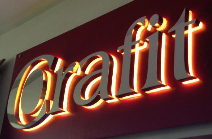 ?背光字俗稱背打光字,就是字背面打光,光源安裝在不銹鋼字背面字殼內,光打在墻面上的一種發光字(如圖),背打光字工藝精致,高等雅制,根據不同的做法可以安裝在室外門頭或者室內形象墻上等。