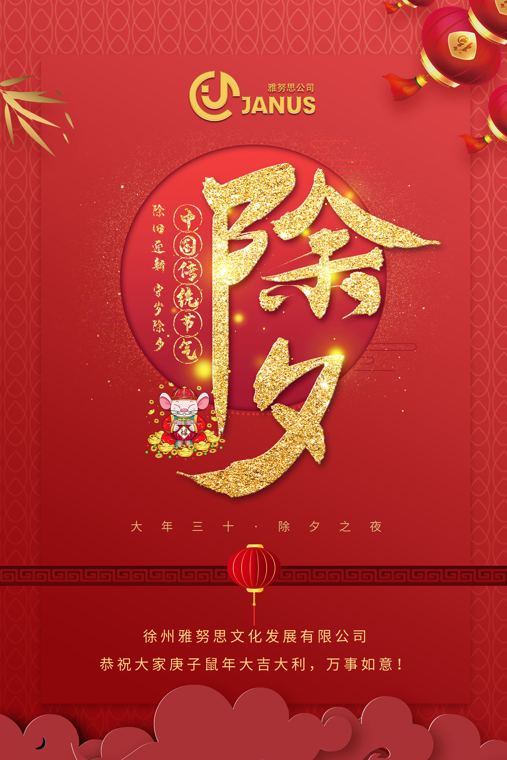 雅努思公司除夕三愿,愿大家:鼠年吉祥、家人安康、萬事順遂!!!